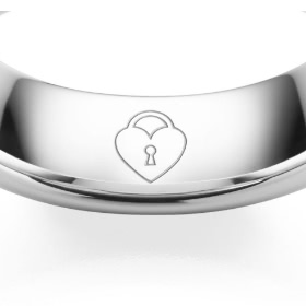 We would usually engrave names and the date here. It is popular to accompany the engraving with a discreet stone setting or small hearts.
